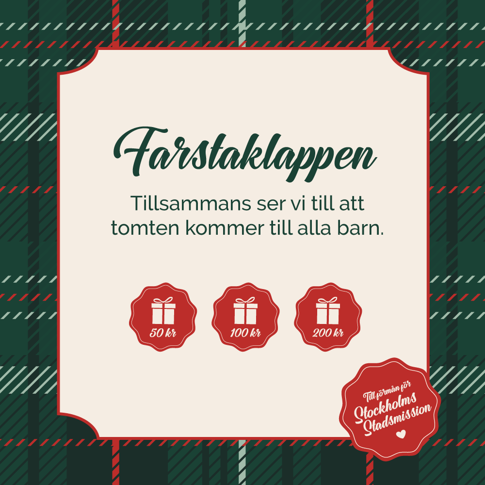 Farstaklappen är ett initiativ av Farsta Centrum till förmån för Stockholms Stadsmission, där vi samlar in pengar till julklappar till barn som lever i ekonomisk utsatthet.